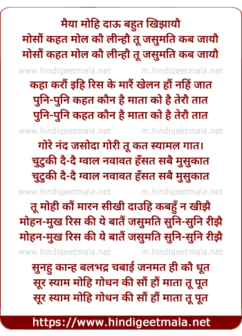 Lyrics of Mayyaa Mohi Daau Bahut Khijaayau - मैया मोहि दाऊ बहुत खिझायौ
