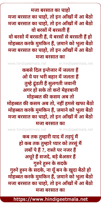 Lyrics of Maza Barsat Ka Chaho - मजा बरसात का चाहो