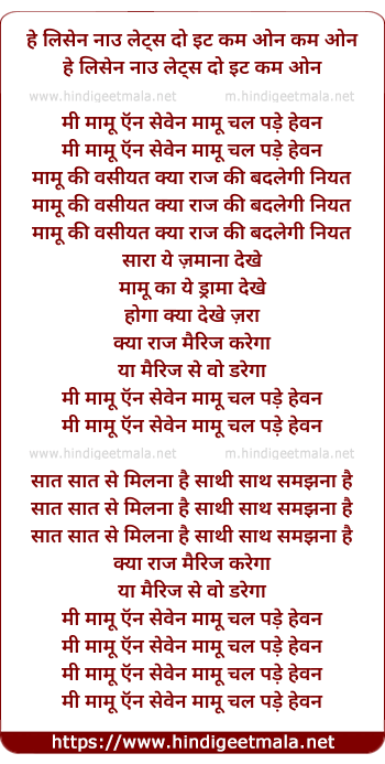 Lyrics of Main Mamu And Seven, Mamu Chal Pade Heaven - मैं मामू एंड सेवेन मामू चल पड़े हेवन