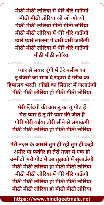 Lyrics of Meethi Loriya Main Dheere Gaoon Re