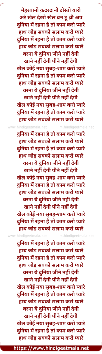 Lyrics of Duniyaa Mein Rahanaa Hai To Kaam Karo - दुनिया में रहना है तो काम करो