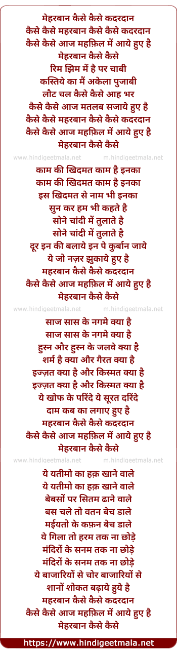 Lyrics of Meharbaan Kaise Kaise Kadardan Kaise Kaise Aaj Mahfil Me Aaye Hai - मेहरबान कैसे कैसे कदरदान कैसे कैसे आज महफ़िल में आये हुए है