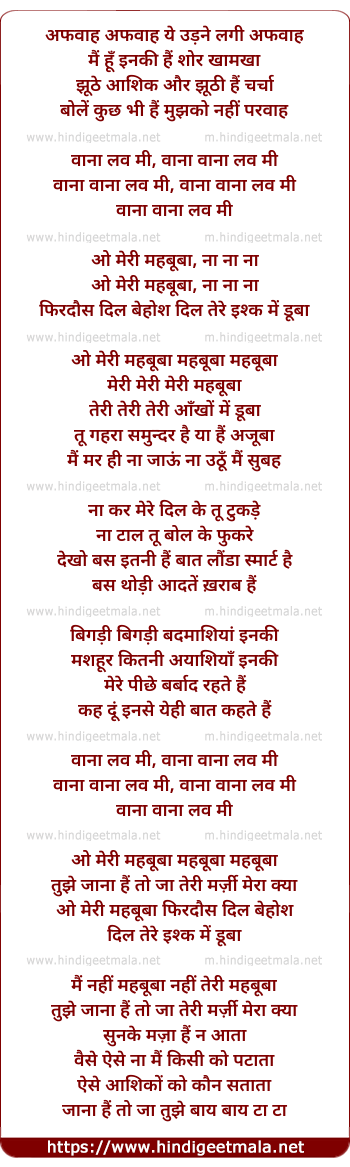 Lyrics of Mehbooba - महबूबा