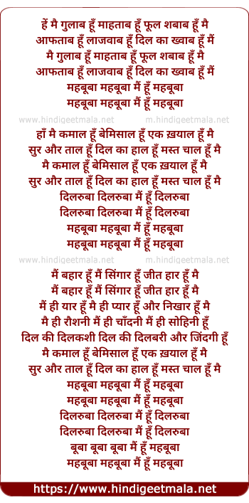 mehbuba mehbuba mai hu mehbuba