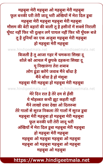 Lyrics of Mehbuba Meri Mehbuba Phul Ban Ki Pari - महबूबा मेरी महबूबा फूल बन की परी