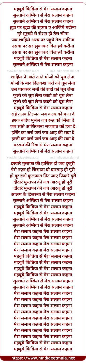 Lyrics of Mehbube Kibriya Se Mera Salam - महबूबे किब्रिया से मेरा सलाम