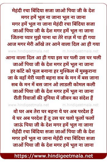 magar hume bhul na jana mehandi racha bindiya saja