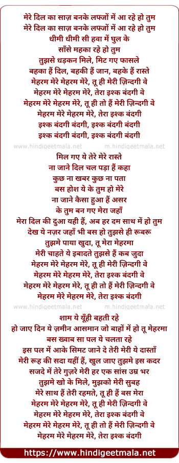 Poetic Translation - Lyrics of Meheram Mere - मेहरम मेरे