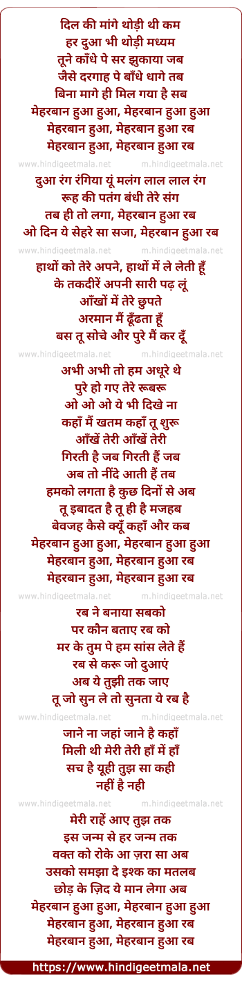 Lyrics of Meherbaan Hua - मेहरबान हुआ