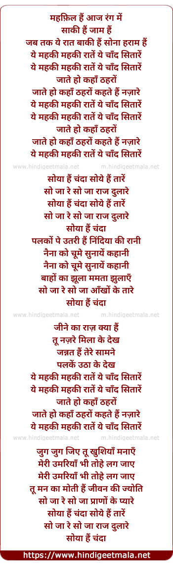 so ja re so ja aankho ke taare