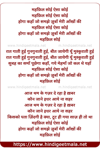 Lyrics of Mehfil Soyi Aisa Koi - महफ़िल सोई ऐसा कोई