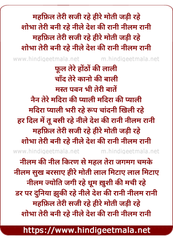Lyrics of Mahfil Teri Saji Rahe, Hire Moti Jade Rahe - महफ़िल तेरी सजी रहे, हीरे मोती जड़ी रहे