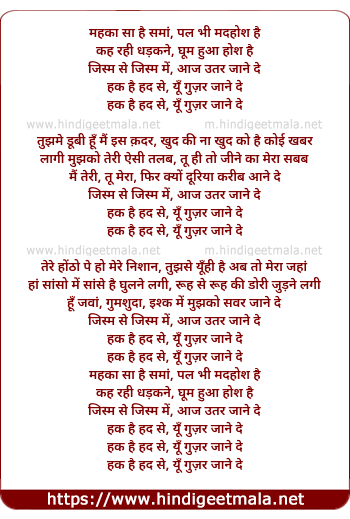 jism se jism me, aaj utar jaane de