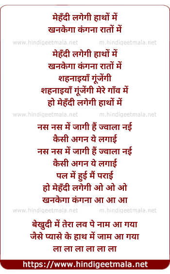 Lyrics of Mehndi Lagegi Haathon Me (Part 2) - मेहँदी लगेगी हाथों में