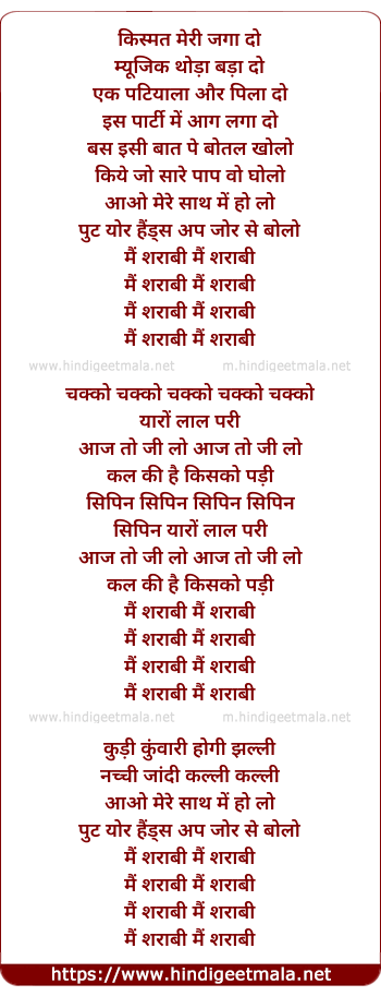 Lyrics of Main Sharabi - मैं शराबी