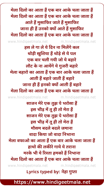 Lyrics of Mela Dilo Ka Aata Hai - मेला दिलो का आता हैं