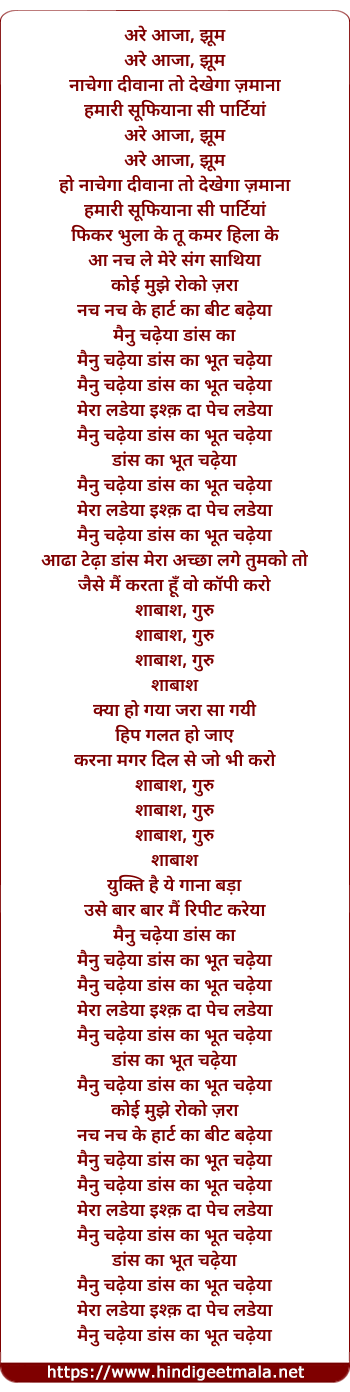 Lyrics of Menu Chadeya Dance Ka Bhoot Chadeya - मेनू चड़ेया डांस का भूत चड़ेया