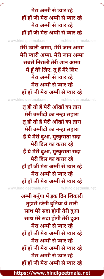 Lyrics of Mera Ami Se Pyar Rahe - मेरा अम्मी से प्यार रहे