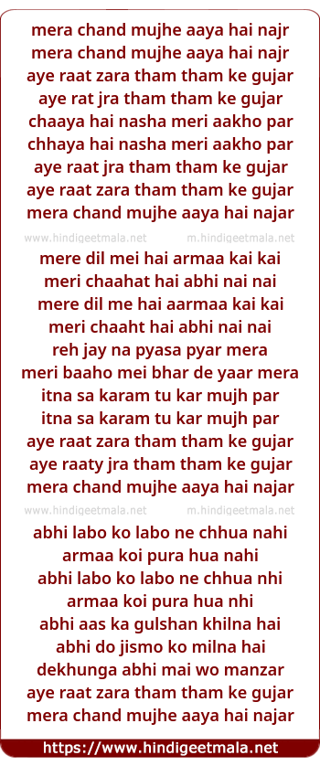 Lyrics of Mera Chaand Mujhe Aaya Hai Nazar - मेरा चाँद मुझे आया है नजर
