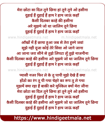 Mera Chhota Sa Dil Tune Chhina - मेरा छोटा सा दिल तूने छिना