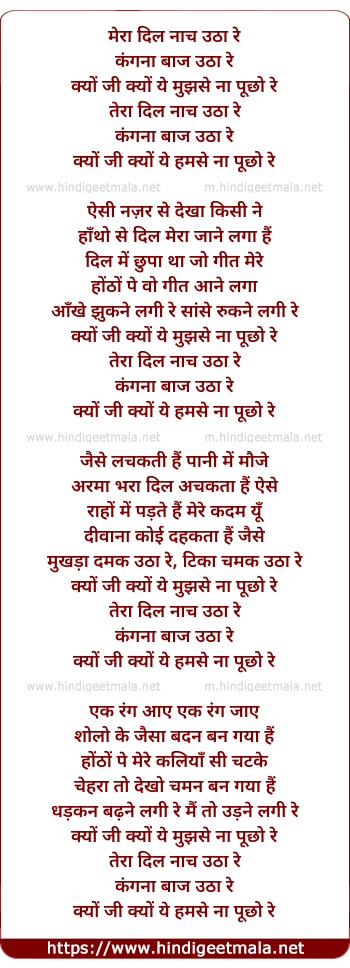 Lyrics of Mera Dil Nach Utha Re - मेरा दिल नाच उठा रे