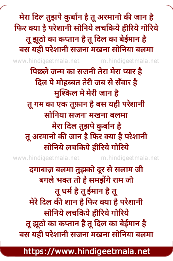 Lyrics of Mera Dil Tujhpe Kurbaan Hai - मेरा दिल तुझपे कुर्बान है