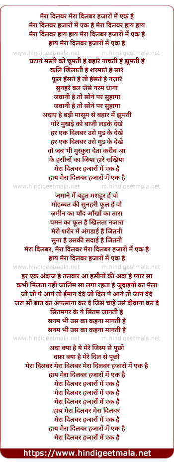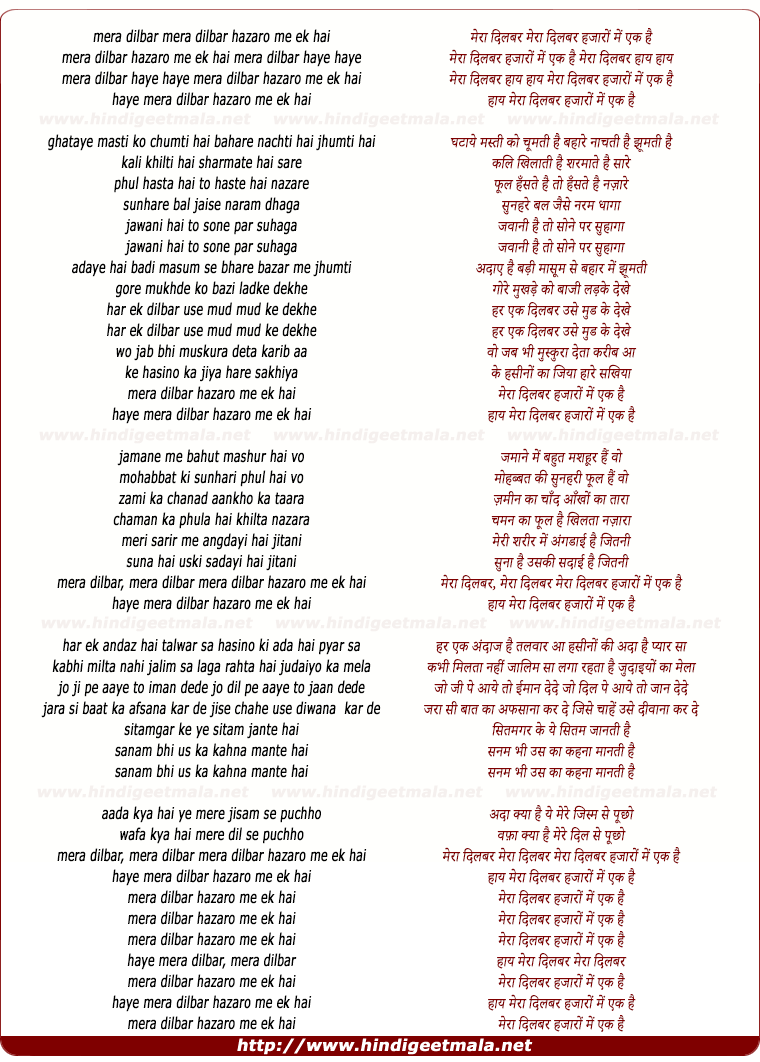 mera dilbar, mera dilbar mera dilbar hazaro me ek hai