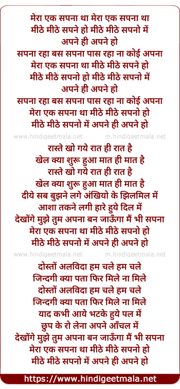 Lyrics of Mera Ek Sapna Tha - मेरा एक सपना था