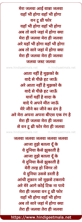 Lyrics of Mera Hi Jalwa - मेरा ही जलवा