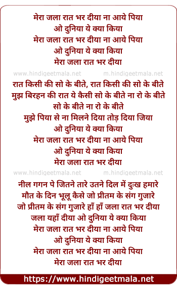 Lyrics of Mera Jala Raat Bhar Diya - मेरा जला रात भर दीया