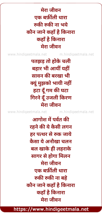 Lyrics of Mera Jeevan Ek Barfeeli Dhara - मेरा जीवन एक बर्फीली धारा