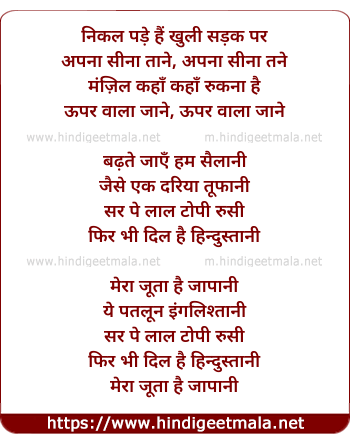 Lyrics of Mera Joota Hai Japani, Ye Patloon Englishtani (Duet) - मेरा जूता है जापानी, ये पतलून इंगलिश्तानी