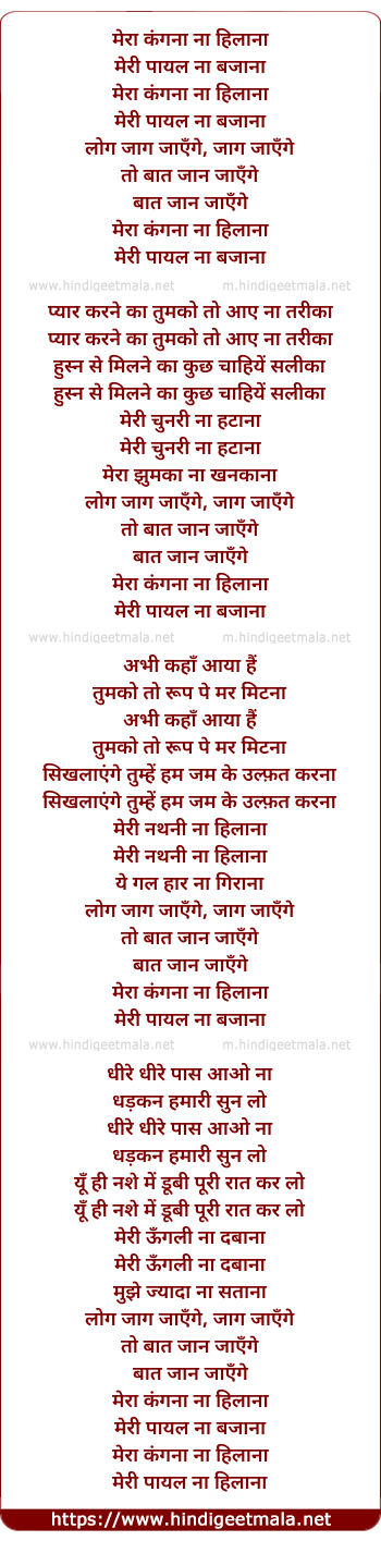 Lyrics of Mera Kangana Na Hilana - मेरा कंगना ना हिलाना