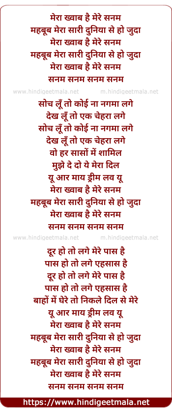 Lyrics of Mera Khwab Hai Mera Sanam - मेरा ख्वाब है मेरे सनम