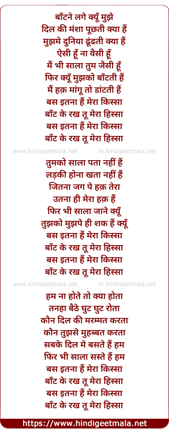Lyrics of Mera Kissa - बाँटने लगे क्यूँ मुझे