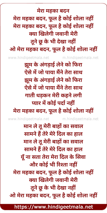 Poetic Translation - Lyrics of Mera Maheka Badan - मेरा महका बदन