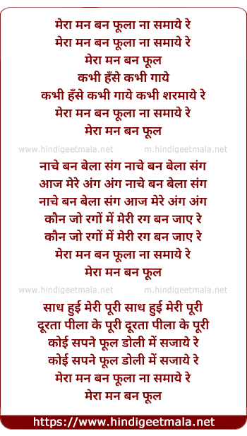 Lyrics of Mera Man Ban Phul Phula Na Samaaye Re - मेरा मन बन फूला ना समाये रे
