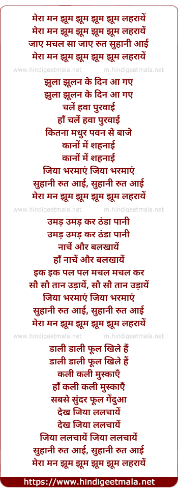 Lyrics of Meaa Man Jhoom Leharaye Jaye - मेरा मन झूम लहरायें जाये