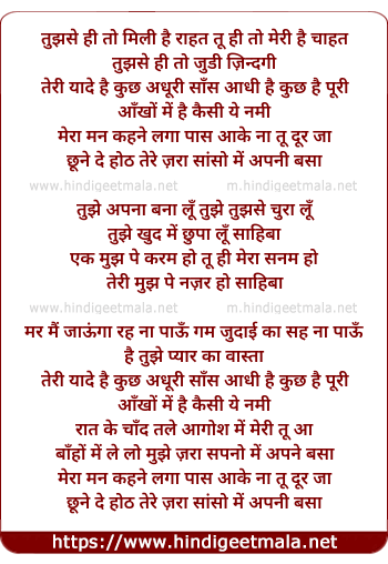 tujhse hi to mili hai rahat tu hi to meri hai chahat