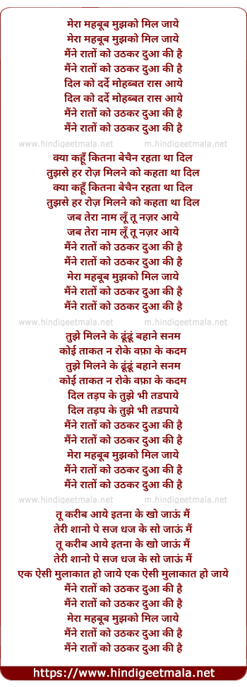 Lyrics of Meraa Mehboob Mujhko Mil Jaye - मेरा महबूब मुझको मिल जाये