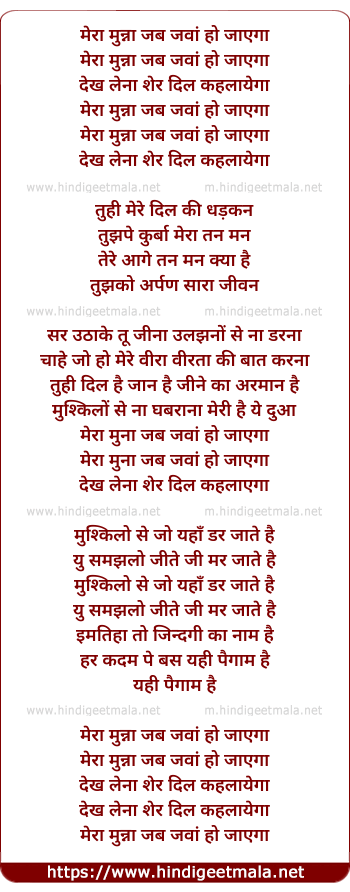 Lyrics of Mera Munna Jab Jawan Hoga - मेरा मुन्ना जब जवां हो जाएगा