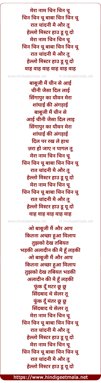 Lyrics of Mera Naam Chin Chin Chu
