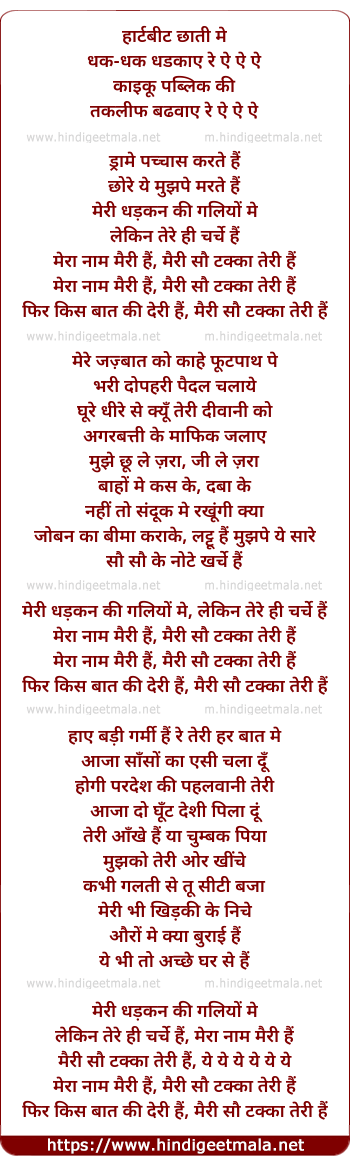 Lyrics of Mera Naam Mary - मेरा नाम मैरी