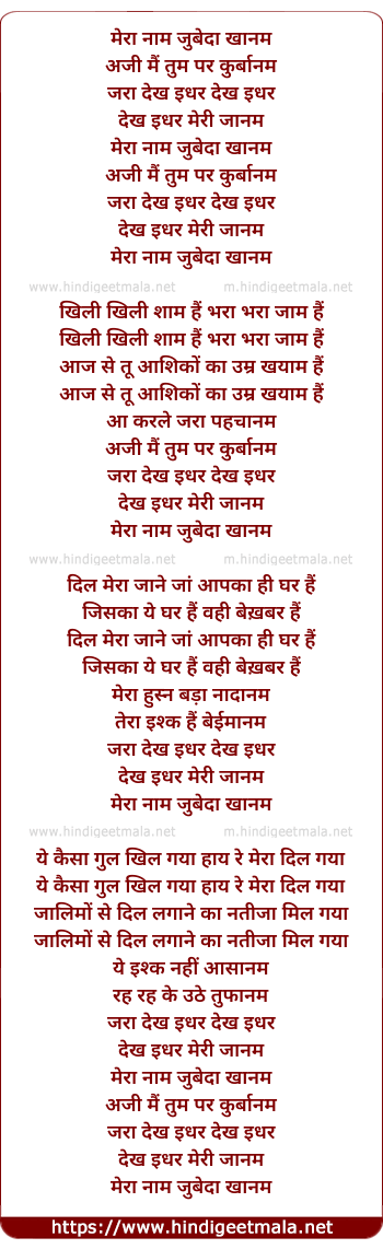 Lyrics of Mera Naam Zubeda Khanam - मेरा नाम जुबेदा खानम