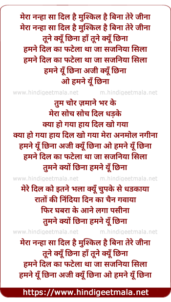 Lyrics of Mera Nanha Sa Dil Hai - मेरा नन्हा सा दिल है