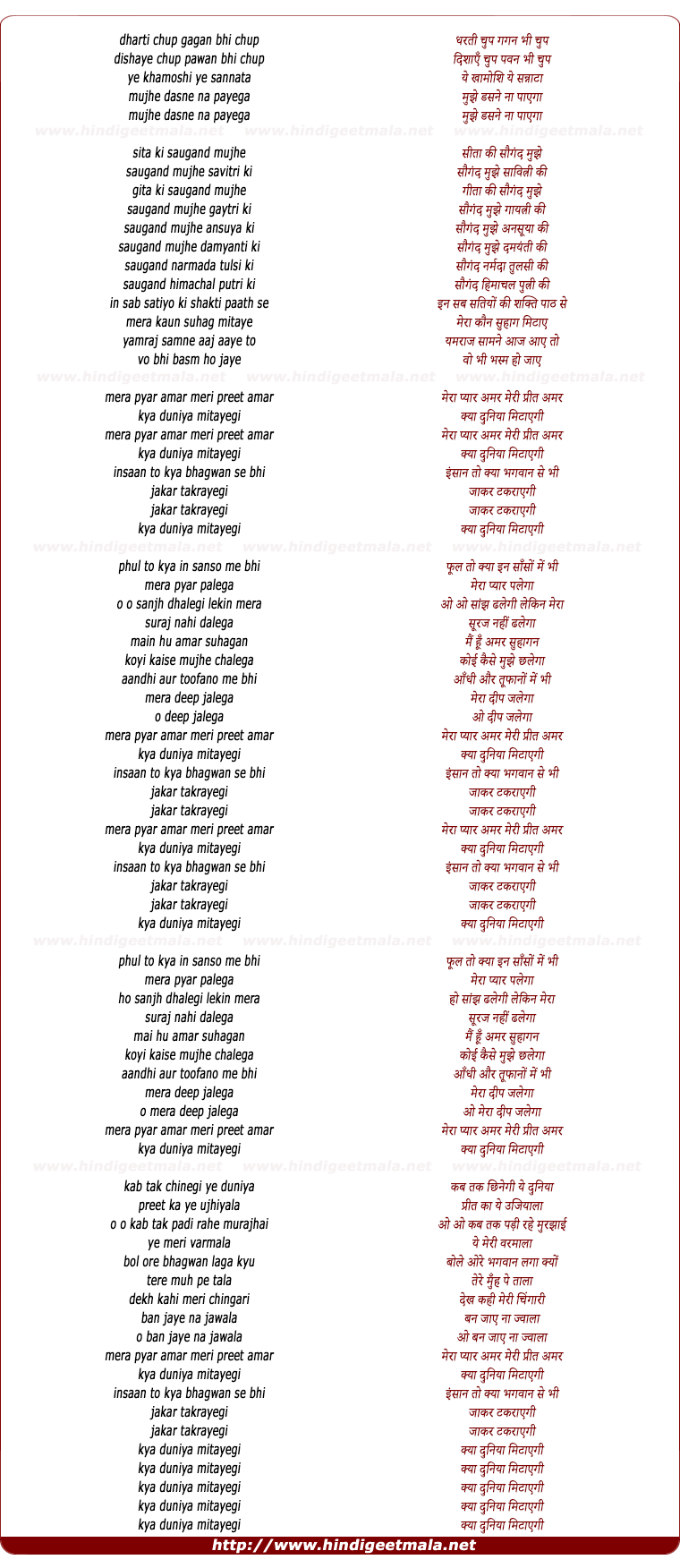 Lyrics of Mera Pyar Amar Meri Preet Amar - मेरा प्यार अमर मेरी प्रीत अमर