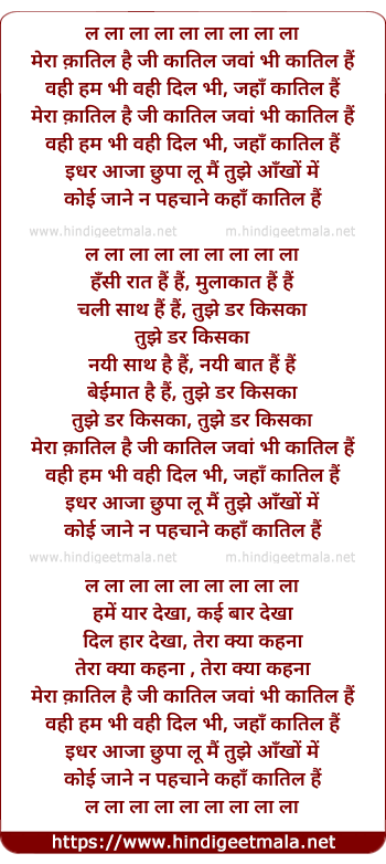 Lyrics of Mera Qatil Hai Ji Qatil Java - मेरा क़ातिल है जी कातिल जवां भी