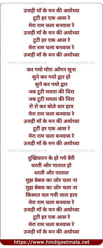 Lyrics of Mera Ram Chala Banwas - मेरा राम चला बनवास