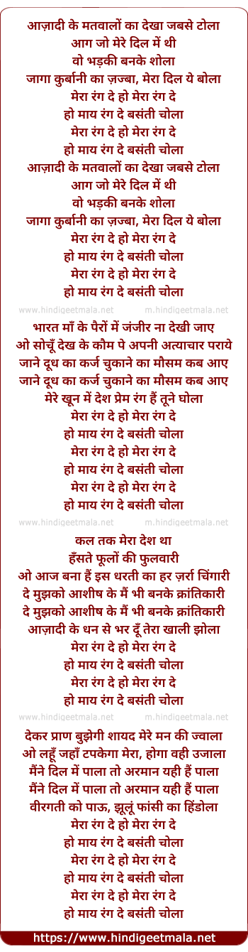 ho maay rang de basanti chola