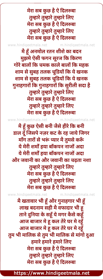 Lyrics of Mera Sab Kuch Hai Ae Dilruba Tumhare Liye - मेरा सब कुछ है ऐ दिलरुबा तुम्हारे लिए